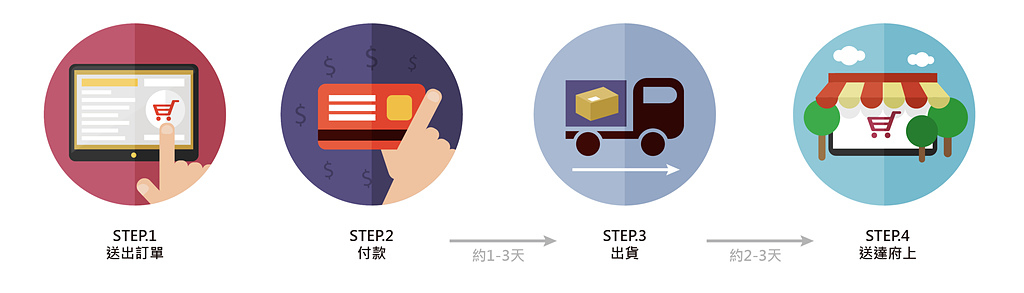 ※例假日與國定假日無法進行出貨手續,請您特別留意。