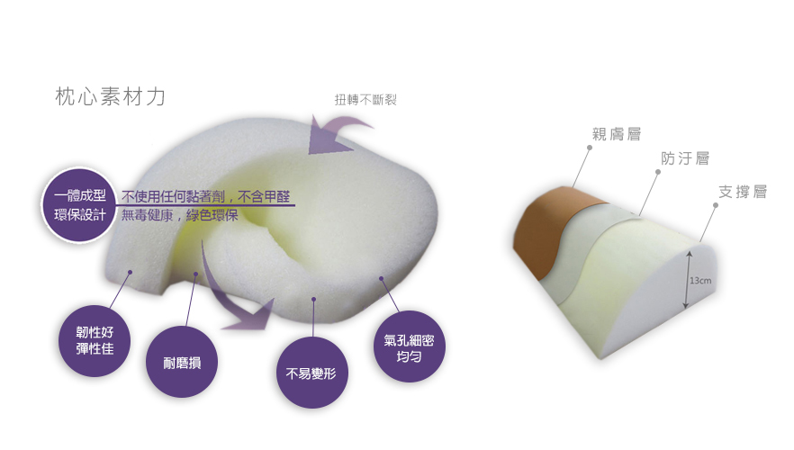 太空棉的海綿密度有做調整,彈性佳不易扭曲破損,如圖示: