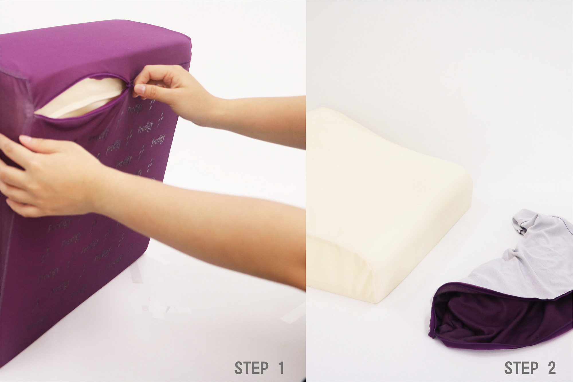 1.拆卸時,請將拉鍊拉開後,將布套由內向外,邊捲邊脫,可避免因不當拉扯而損壞布套或枕心。