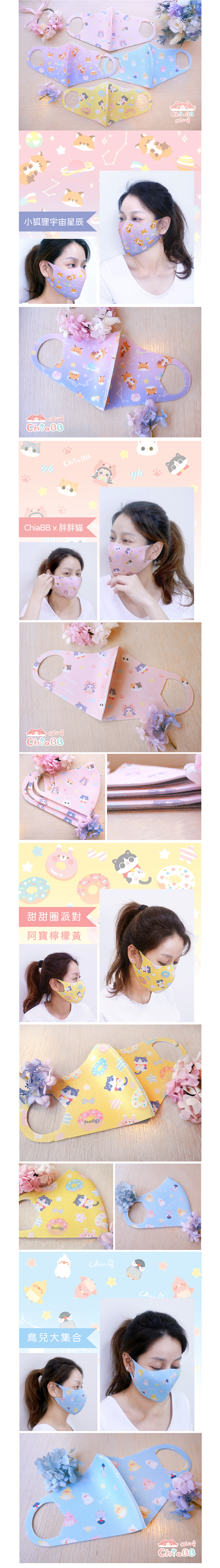 插畫家ChiaBB聯名合作,透過創作角色融入口罩設計中,結合色彩、可愛風療癒人心,大人小孩都能駕馭