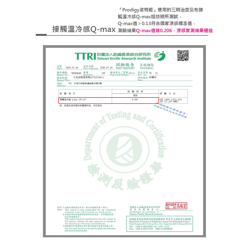※涼感標準超過國家檢驗標準0.13,高達0.206