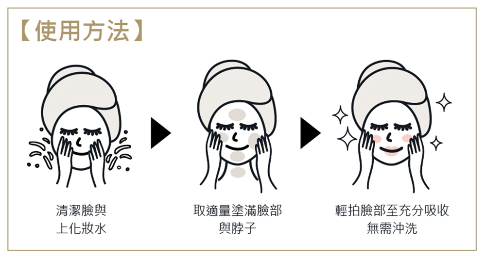 • 質地清爽輕薄,不需沖洗、方便使用,隔日持續有感保濕。