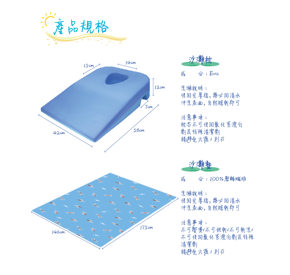 ① 日光浴 、沙灘浮板運用,居家海邊都適用