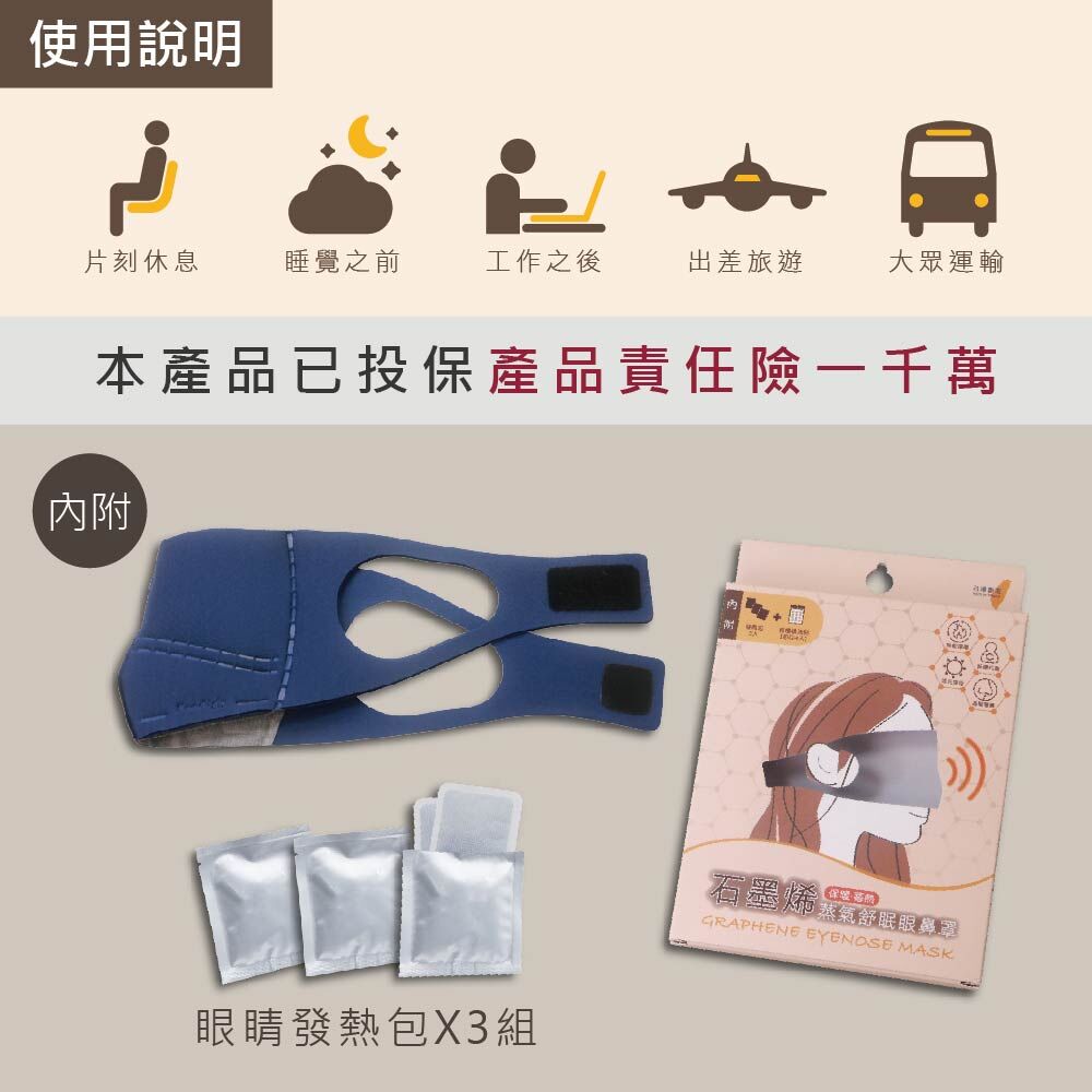 盒裝規格:1個眼鼻罩、3包鋁袋發熱包(每包2片)
