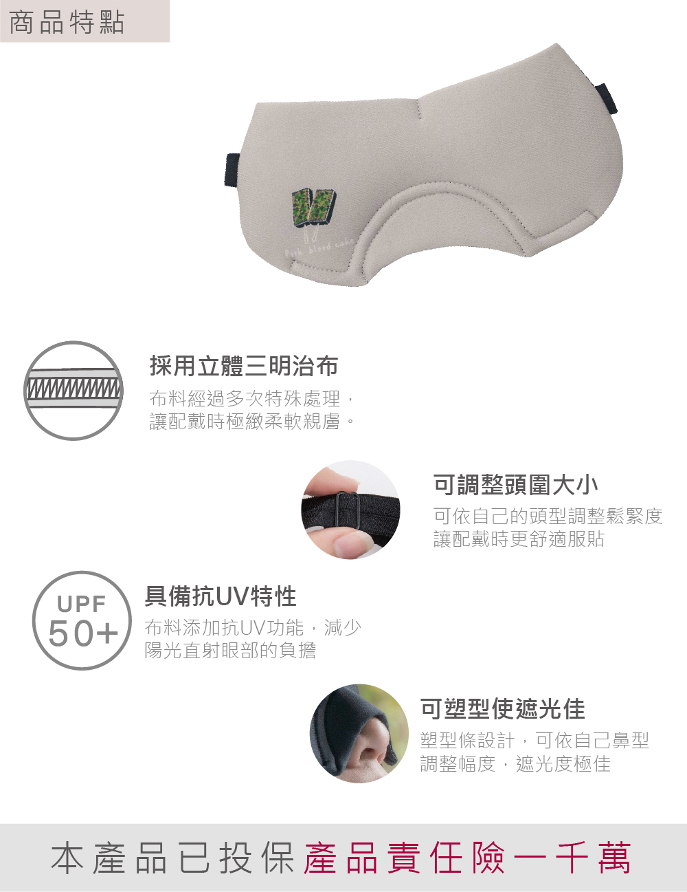 ※鼻翼塑型且可調整頭圍 / 可依個人鼻翼塑型,達到最佳遮光效果;附調整式伸縮帶,使個人頭圍達到極佳鬆緊度