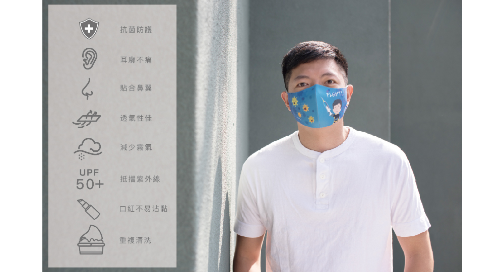 抗UV、抗菌、環保可水洗重覆使用、親膚透氣