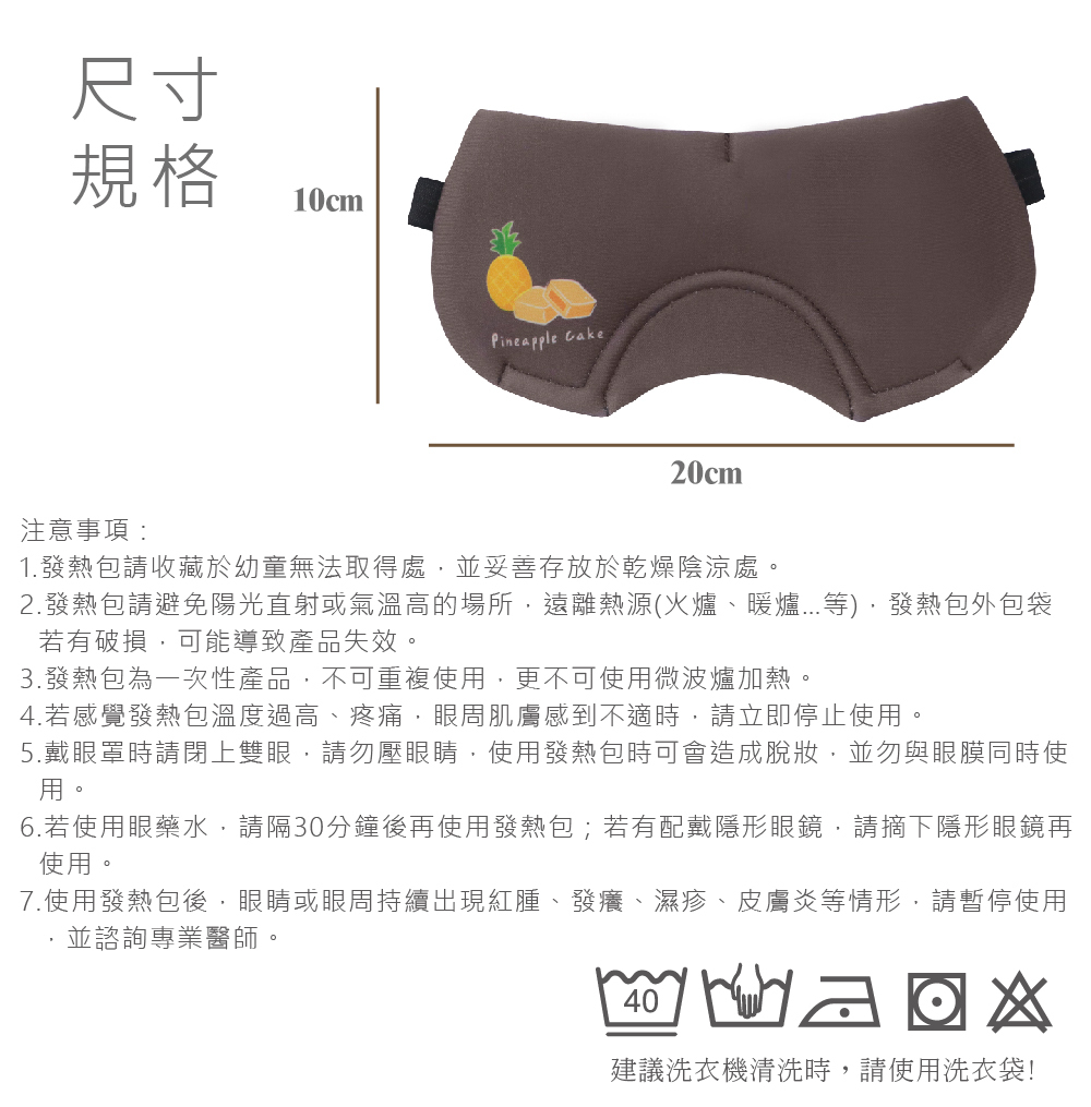 ⑥戴眼罩時請閉上雙眼,請勿壓眼睛,使用發熱包時可會造成脫妝,並勿與眼膜同時使用