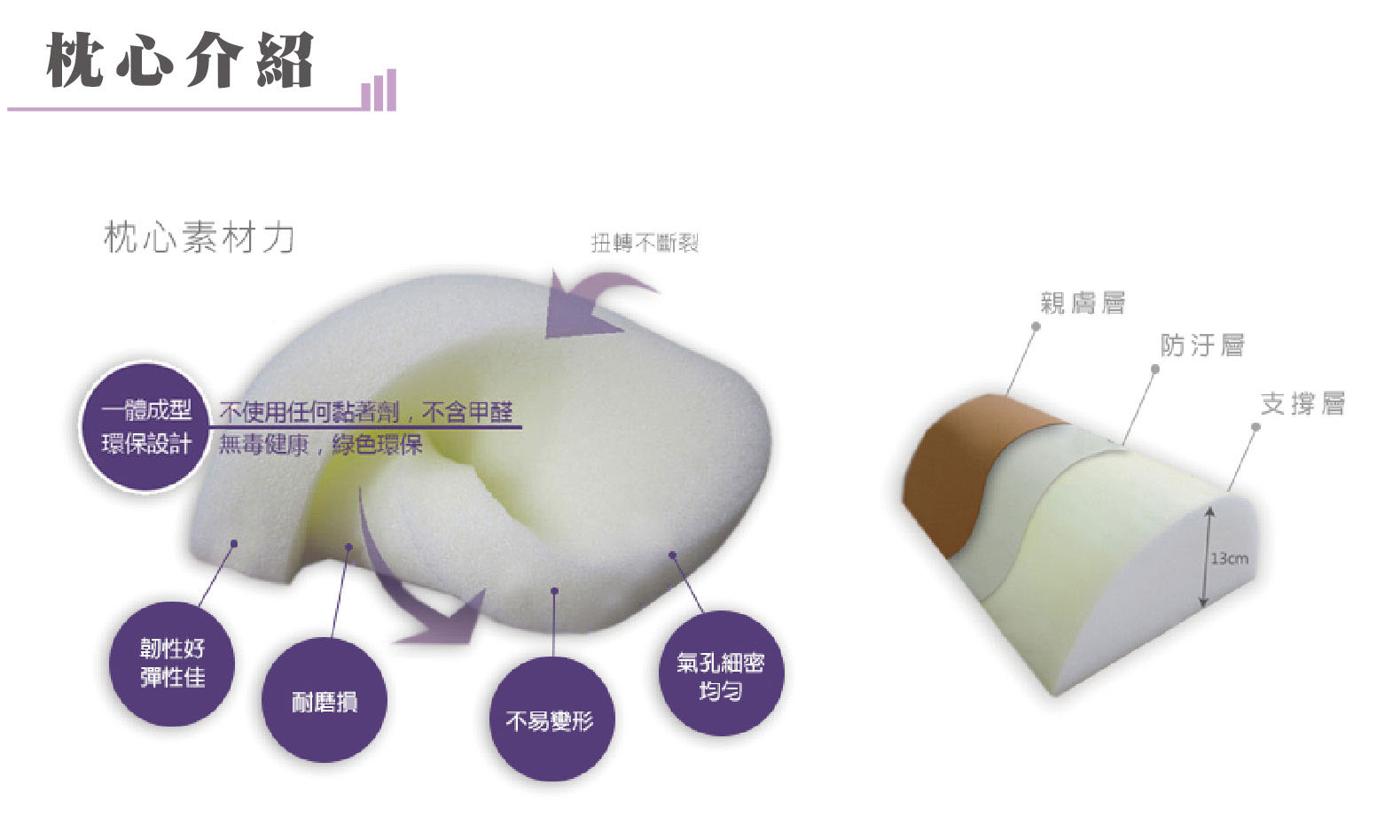 ※高彈PU泡棉枕芯,軟硬適中,極輕巧拿取